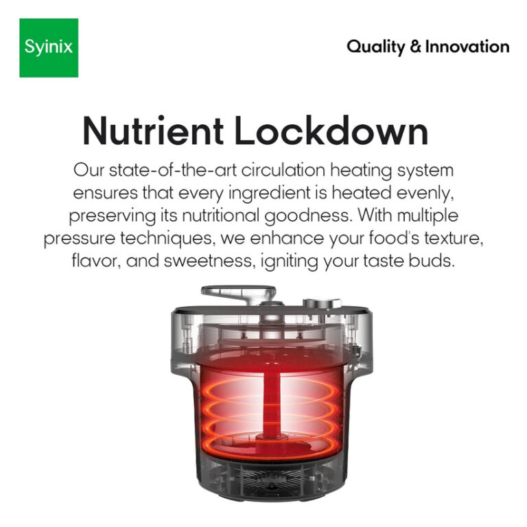 It also locks-in nutrients, there is no lose of the nutritional value of the food since all ingredients are evenly heated. no over-heating of nutrients that leads to lose of nutritional value
