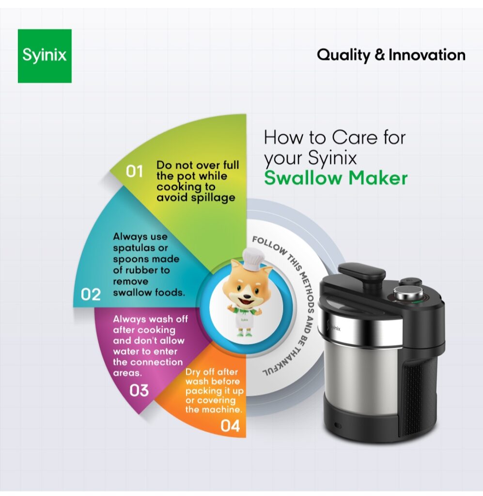 Imagine the sheer joy of effortlessly preparing your cherished Ghanaian swallows in a matter of minutes. With the Syinix S-Mortar All-in-1 Swallow Maker.