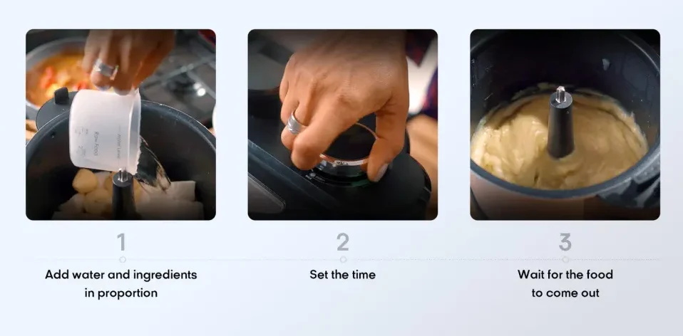 You just put in all the food turn the knob, and Wait for your food to be ready