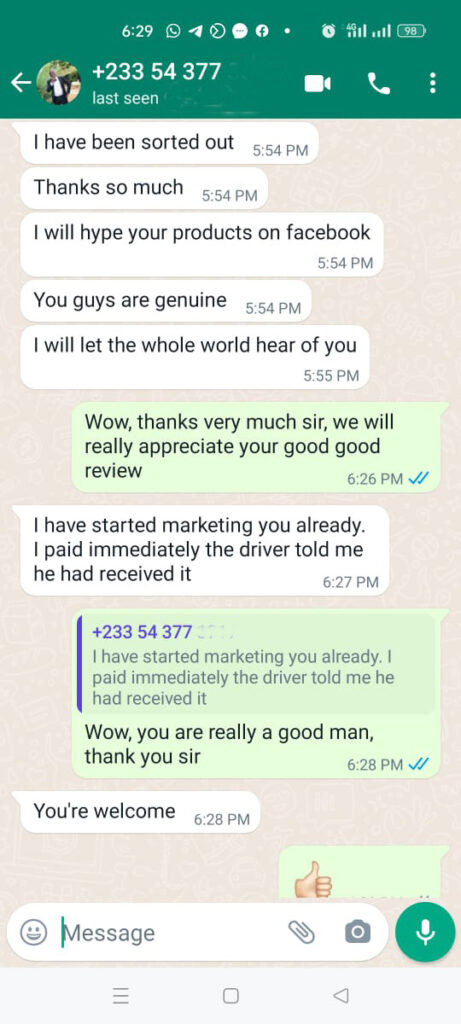 A Free Delivery to your location worth between 70 – 2000Ghc depending on your location